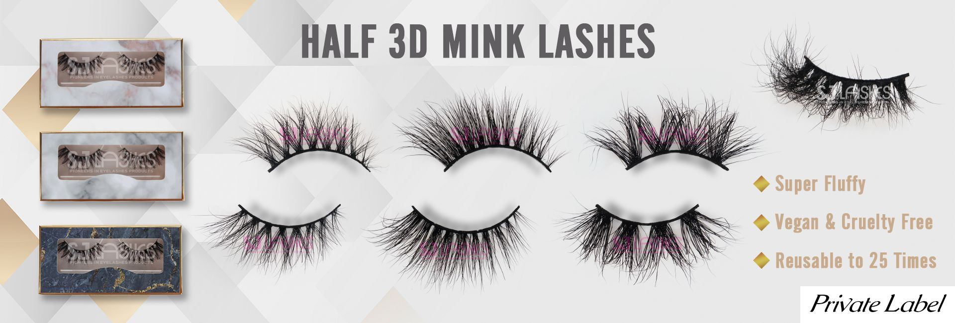 3/4 Half Mini Fluffy 3D Mink Eyelashes with 25 Wearing Times Private Label for Eyelash Packaging